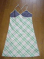 左と同じ「キャミソール&ワンピース」の本を見て作りました。私のバストが小さいのか(涙)胸部分の脇がぶかぶかで・・・重ね着しないとまる見えです。(2005.3.22) |