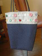 母の日にバッグを色違いで二つつくりました。形はシンプルだけれど、生地の柄がステキなので気に入っています。(2005.5.8) |