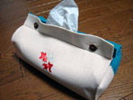 ホビーショーで作ったフェルトのティッシュケース。ミシン刺繍。フェルトの色と刺繍の柄は自分で選べました。体験代は材料費込みで500円。(2005.5.19) |