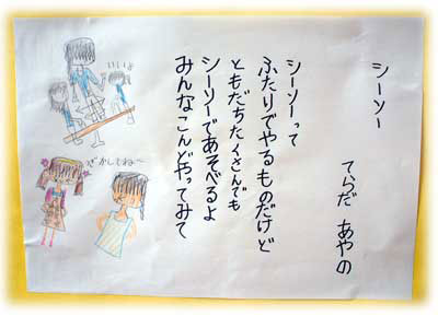 作成後に自分専用の「てづくり帳」を作って、材料や作り方を書き込み、感想や作品のポイント・工夫した点など、絵入りで細かく書いていました。でも、そのノートの公開は「ダメ!」だそうです〜(2004.3.3) |