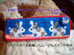 フェリシモキット「ちいさなクチュリエ 自分で作れば宝物 ニードルポイントポーチの会」ウサギのポーチ (縦約8cm、横約22cm)。