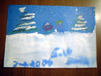 が紹介されていて、それで冬の絵を描いてみました。歯ブラシの手法は私も昔はよく使いました。年賀状を手描きで書いていた頃に・・・(2004.4.21) |