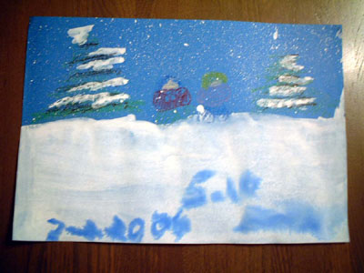 ディズニーチャンネルの「アートアタック」を見て、歯ブラシで雪を散らす技