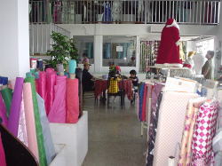 Fabrics」。店内は「RADHI’S」より広いものの、ほとんどがポリエステル生地。「ベンフランクリン」にはコットン生地がたくさんという話です・・・。CHIFUYU、ポリエステル生地3種類を購入。